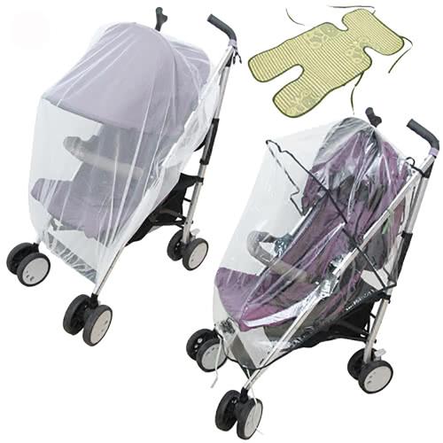 月陽通用型全罩式兒童推車防蚊罩蚊帳亞麻草蓆涼蓆涼墊超值組(PZ18)