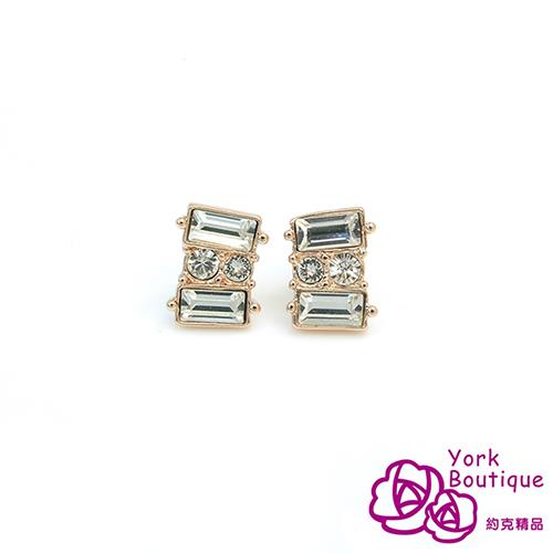 【約克精品】獨家設計施華洛晶鑽包18K玫瑰金針式耳環(SGS認證)