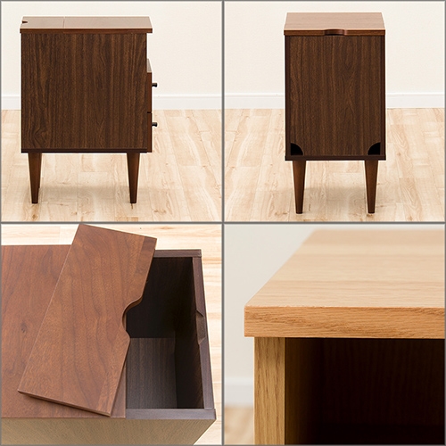 《代代木》和風實用收納床邊櫃,靈巧不占空間卻有多種機能,天板後方為可動式天板設計,內部收納空間當成雜誌收納架,能夠收納您隨手閱讀過的報章雜誌,將延長線放入且背後有配線孔的貼心設計,更方便您在櫃子上放置家電或充電器等物品! 此外也設計有兩個收納抽屜,讓本商品就像個百寶櫃一樣收納力驚人,把它當成床頭櫃、桌邊櫃、雜誌架等都很合適喔!