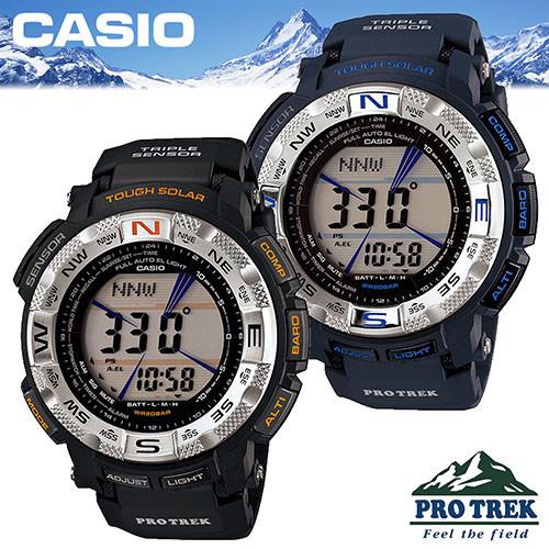 【CASIO 卡西歐 登山錶 系列】專業登山錶 太陽能電力 數位羅盤(PRG-260-1D黑色)