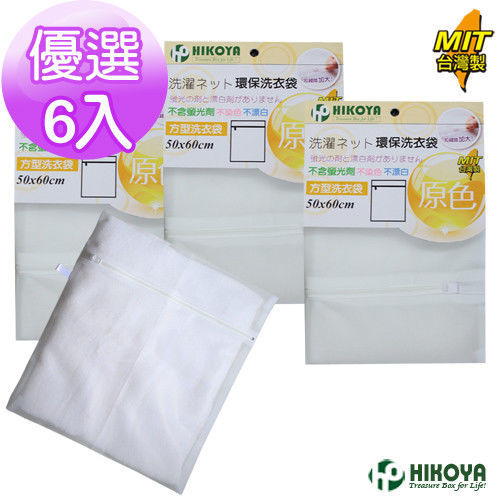 【HIKOYA】原色呵護洗衣袋方型50*60cm優選6入