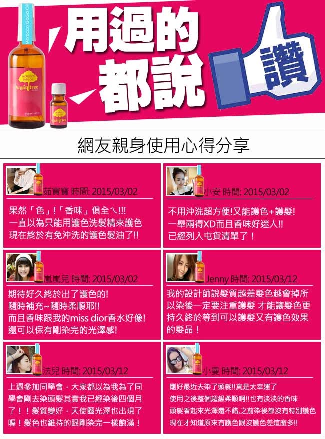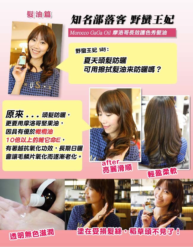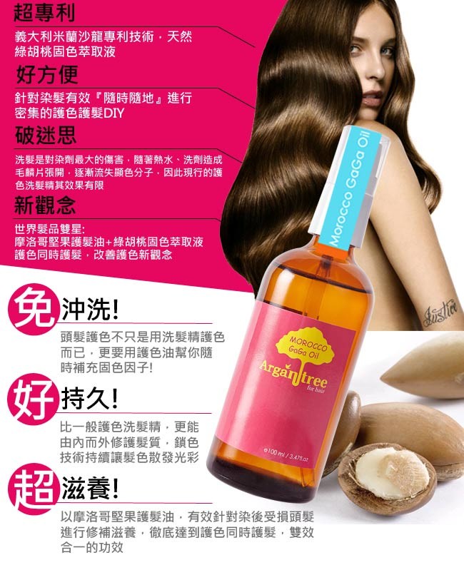 用途:可於頭髮染、燙之後作為加強保養使用。