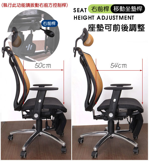 ◆新式底盤操作桿,分三個操作桿,右前桿:前後移動坐墊桿,右後桿:坐墊高低,左桿:後仰固定桿,每個功能操作起來更簡單,提升機構得順暢度,保證物超所值