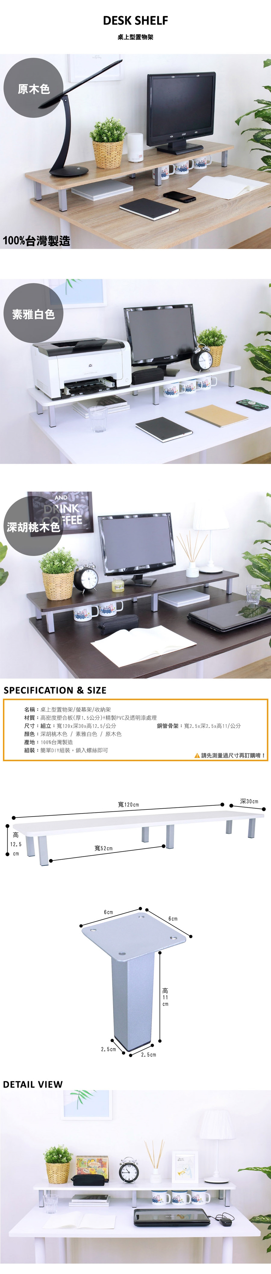 【頂堅】深30x寬120x高12.5/公分-桌上型置物架/螢幕架(三色可選)-2入/組