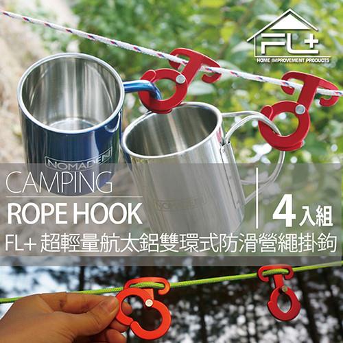 【FL生活+】超輕量航太鋁雙環式防滑營繩掛鉤-4入(FL-008)