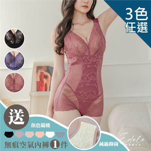 【伊黛爾】360丹激瘦輕感透膚一片式無痕罩杯爆乳塑身衣 (M-XXL,黑/藍/紫紅)★買就送2件石墨烯內褲★