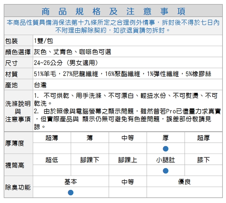 ● 美麗諾羊毛襪。