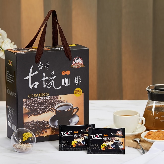 將二合一古坑咖啡倒入杯中,加入95°C以上之熱開水沖泡(每杯約150~180CC,濃淡口味隨個人喜好調配),攪拌均勻後即可享用。