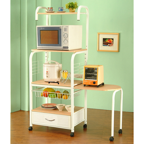 nbsp;nbsp;nbsp;nbsp;nbsp; nbsp; 【多用途四段電器置物架】是一款多功能的電器架,多層設計,集合微波爐架、烤箱架等廚房用品收納於一體之多功能廚房家電置物架,鍋碗瓢盆一次收納。上方固定式大層板,可以放置微波爐等較大電器、中間的活動層板,放上烤箱、電鍋,使用時往外一拉,十分方便!nbsp; nbsp;nbsp;nbsp;nbsp;nbsp;nbsp;nbsp; 下方附有密閉式大抽屜及開放式鐵網抽屜。罐頭食品、蔬果、雜糧統統收進密閉大抽屜,不會妨礙觀瞻,也不怕蟑螂來拜訪。而鐵網抽屜適合擺放不須放冰箱的乾果雜糧(山藥、洋蔥、馬鈴薯等等)既通風也不怕因收納而喪失原始風味。 nbsp;nbsp;nbsp;nbsp;nbsp;nbsp;nbsp; 而且【多用途四段電器置物架】還有一個最上置層板,大大提升了您的收納空間,增加了整理廚房的效率!尤其要介紹的是活動式的側邊桌,可依您的需要裝在電器架的左邊或右邊,有別於一般市面上的傳統家電架,僅有固定式的側邊桌,往往需調整廚房的擺設來配合它,我們【多用途四段電器置物架】活動式的側桌,可自由調整讓整體的寬度再也不用為了1、2公分而傷腦筋了! 還有呢!我們還貼心地設計了電器插座共有3個,方便您使用各式的家電用品,而且電線也不會覺得凌亂不堪,電線經過安全認證,不會漏點及走火,絕非市面上劣質品可以比擬喔!