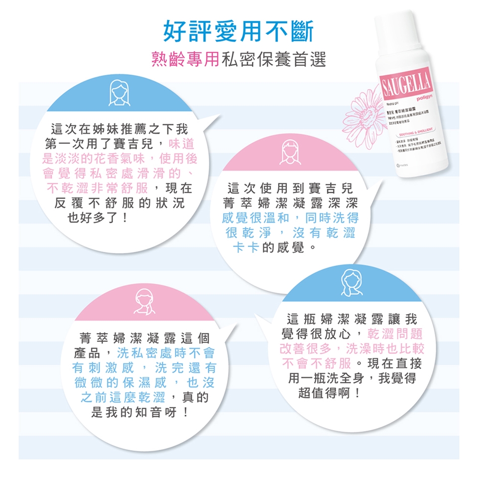 將私密肌膚用清水濕潤,倒取適量菁萃潔浴凝露,如同一般沐浴方式清洗外陰部肌膚後,再以清水沖洗乾淨即可。