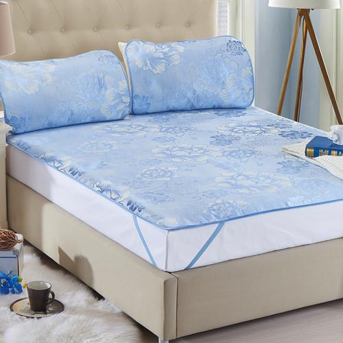 RODERLY 超涼爽透氣冰絲涼蓆 加大三件組-藍
