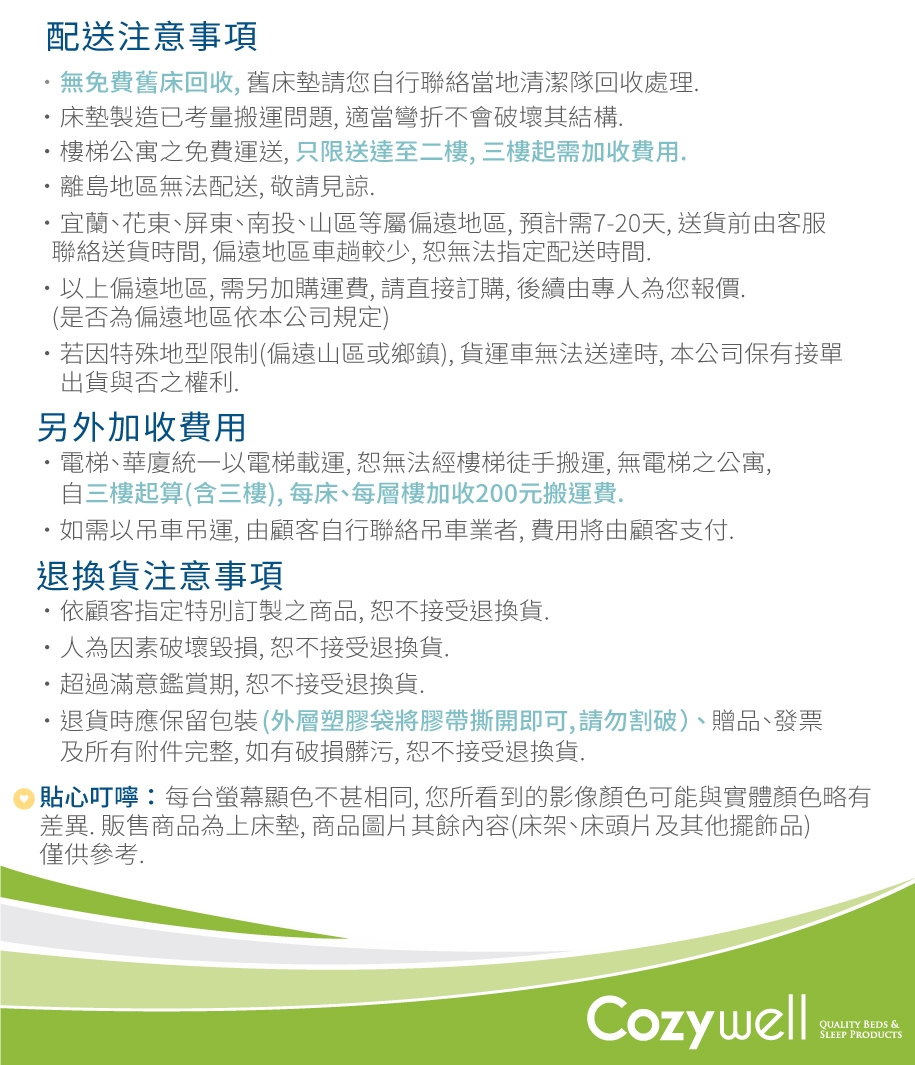 ‧舊床墊請您自行聯絡當地清潔隊回收處理。