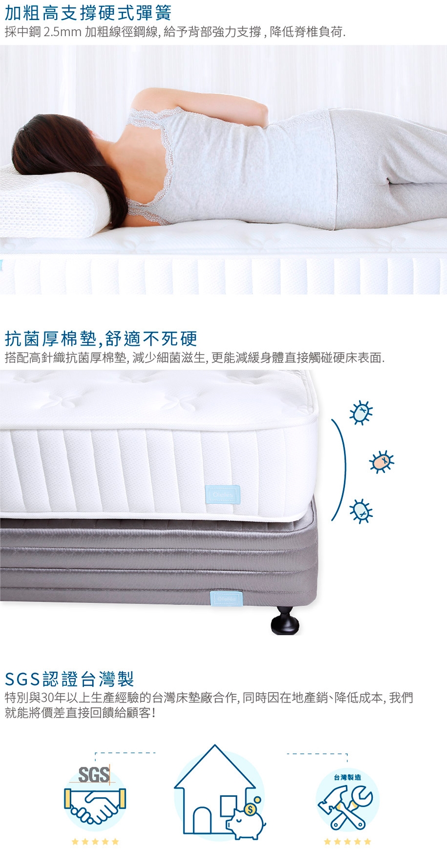 販售商品為上床墊,商品圖片其餘內容(床架、床頭片及其他擺飾品)僅供參考。