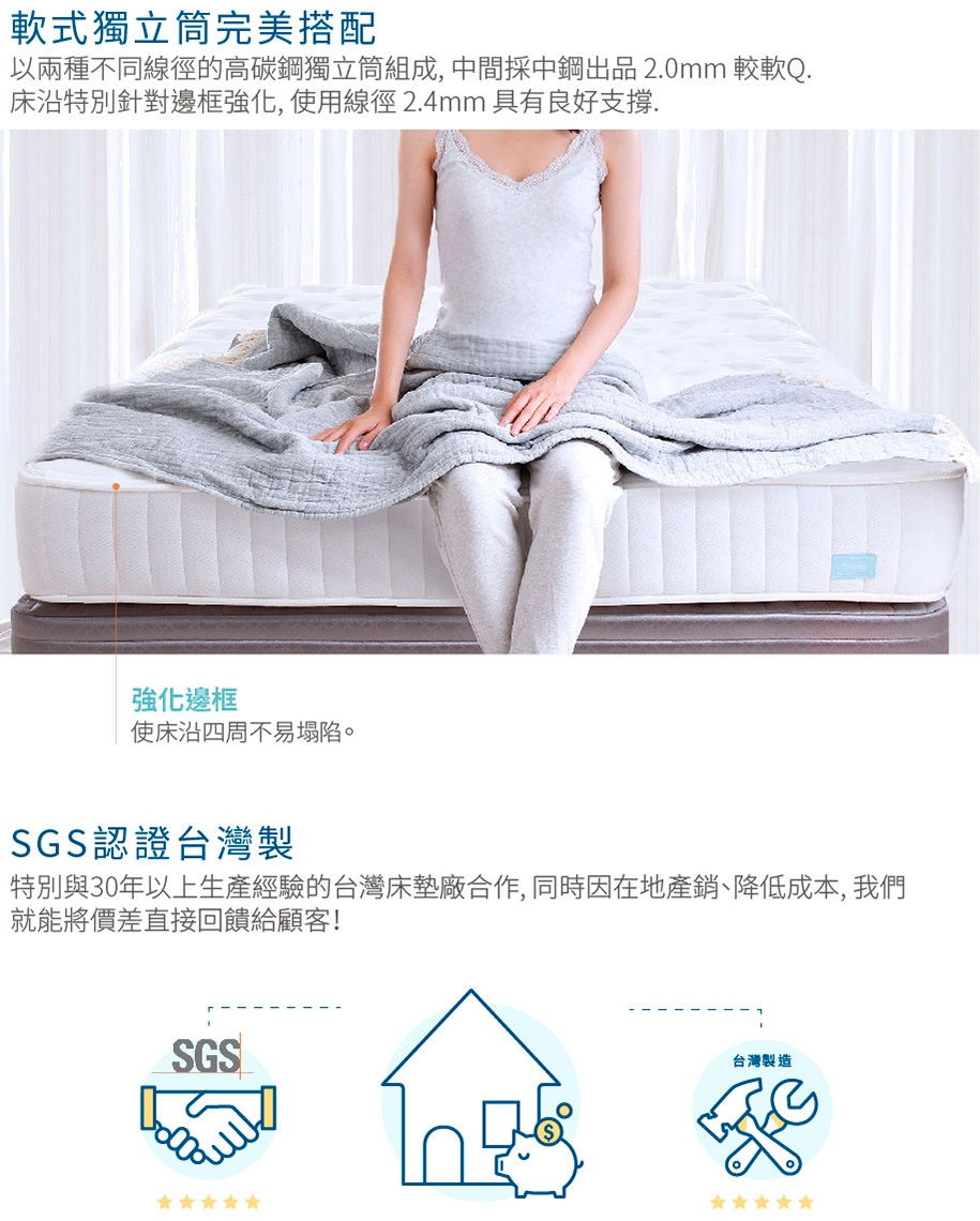 販售商品為上床墊,商品圖片其餘內容(床架、床頭片及其他擺飾品)僅供參考。