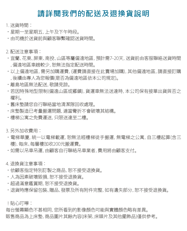 ‧舊床墊請您自行聯絡當地清潔隊回收處理。