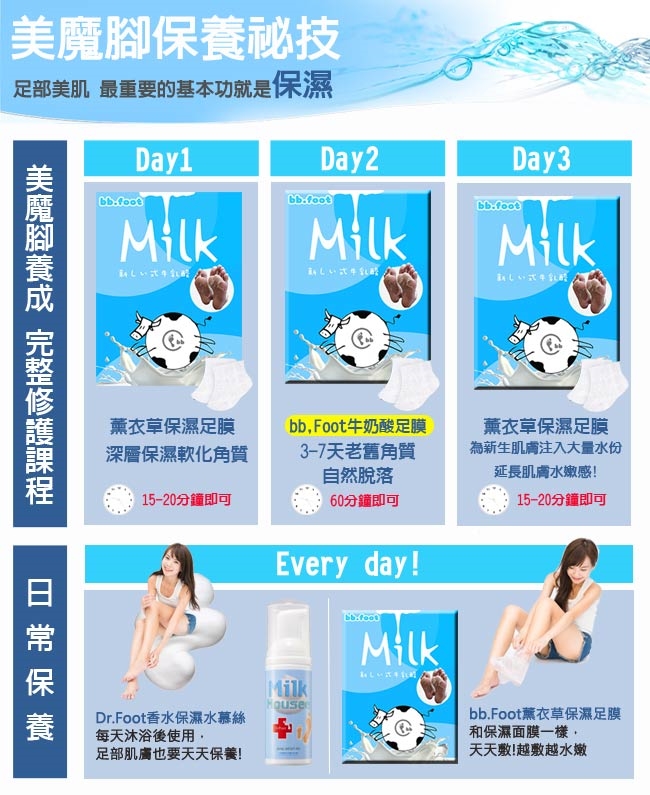 4.約40-60分鐘後將足膜脫下,用清水洗淨、擦乾,擦拭乳液或足霜來滋養雙足。