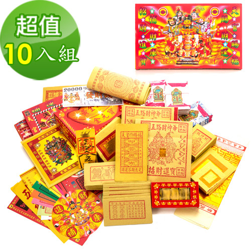 【金發財金紙】補本身財庫-五路財神福星貴人金-10入組 (金紙-豪華版五路財神系列)