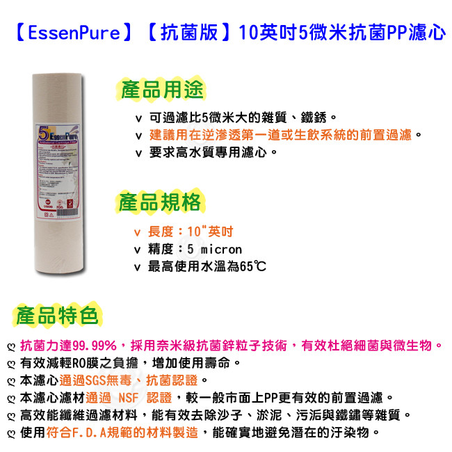 適用市售公版標準10英吋濾殼。