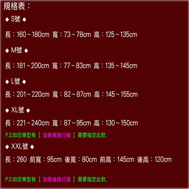 XL尺寸--長:221-240cm、寬:87-95cm、高:130-150cm