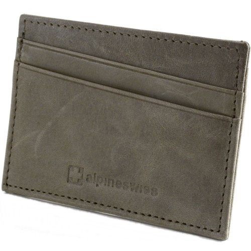 【Alpine Swiss】2016時尚十字標記真皮鐵灰色超薄名片夾