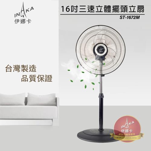 伊娜卡 16吋 三段速3D擺頭工業扇 ST-1672M