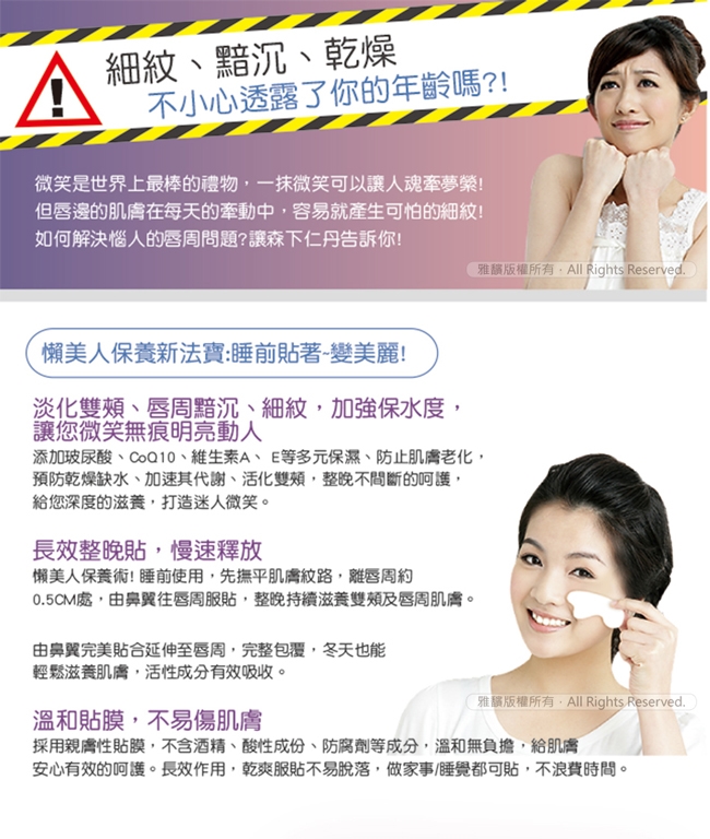 用途:淡化唇周附近暗沉、細紋、乾燥缺水等問題。