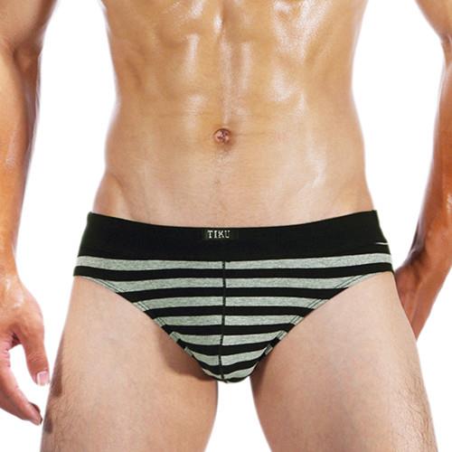 TIKU 梯酷~ 條紋派對 棉質透氣超彈 三角男內褲 -黑灰 (BC1239)