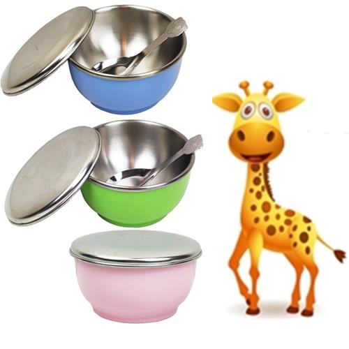 【炫樂嘟酷熊】馬卡龍304不銹鋼兒童隔熱餐碗/鋼蓋+內附不銹鋼湯匙x3入組(隨機出貨)