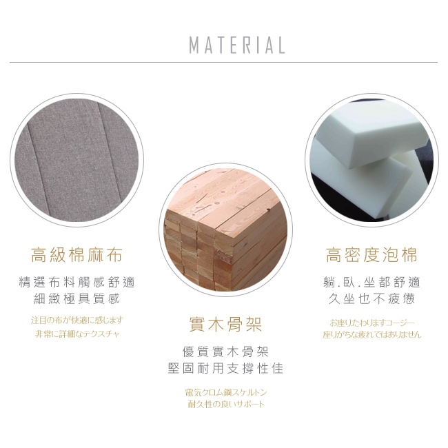‧整組採用高級棉麻布,觸感細緻,可拆洗布套設計,清潔更方便!