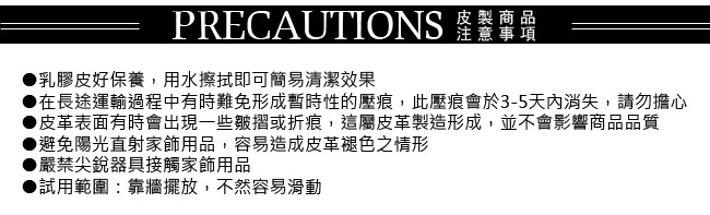 - 細緻皮革,非常容易清理,只要用少許清水擦拭即可清理