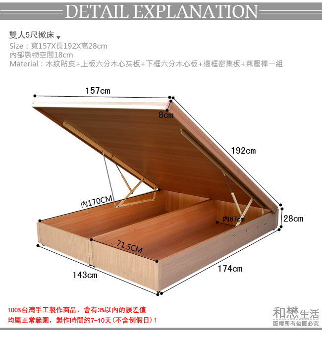 - 掀床主結構採用高級防蛀六分木心板製造,使用壽命較長