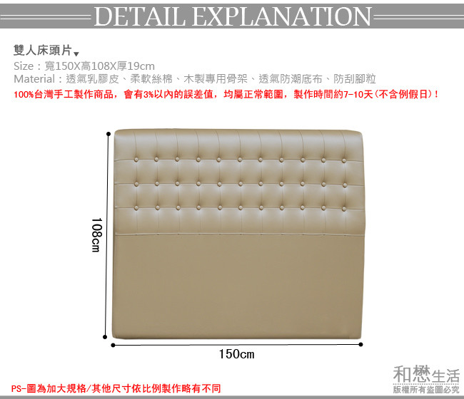 - 床頭片共有三種色系『黑、卡其、咖啡』三種色系可供選擇