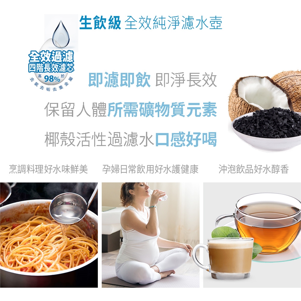 ★首次使用請打開濾水壺上蓋,將濾芯置入壺中注水浸泡10分鐘後,再將濾芯取出以流動水沖洗10秒,再置入濾水壺中,即可開始使用。