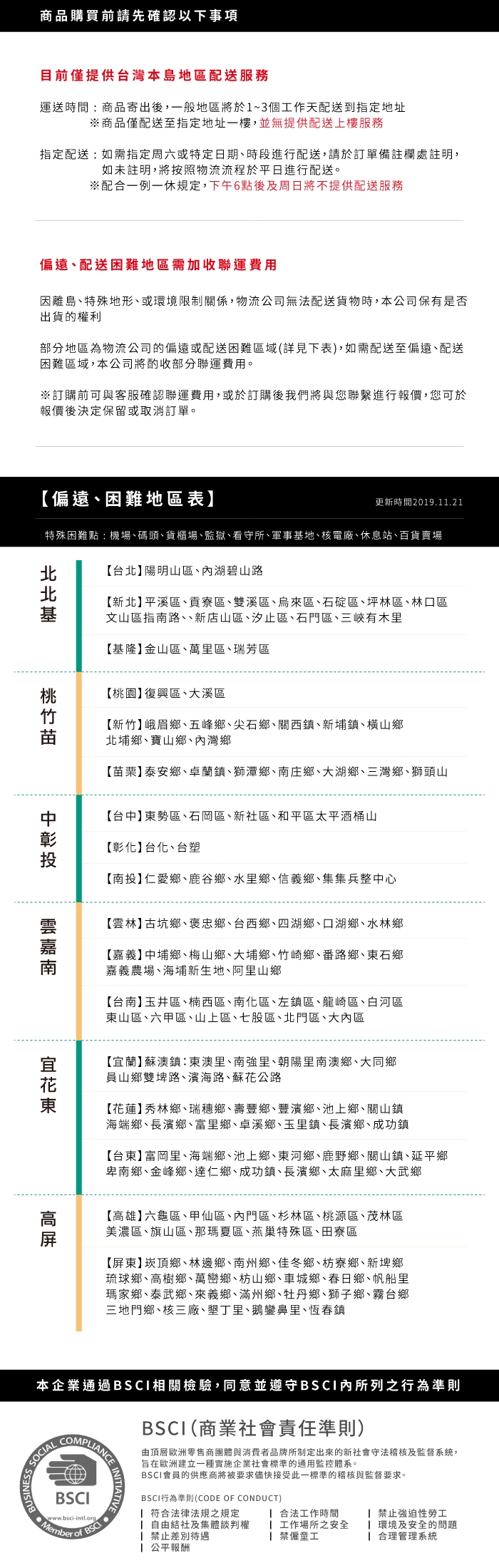 偏遠地區山區、離島地區暫無配送服務,敬請見諒。(偏遠地區之認定由本公司物流部核定)