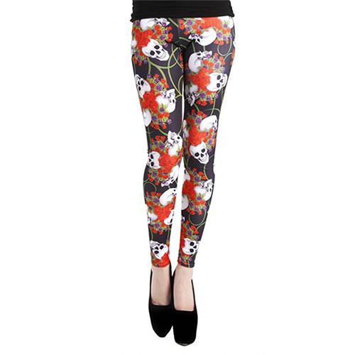 【摩達客】英國進口義大利製Pamela Mann 史嘉莉骷髏花彈性內搭褲打底褲鉛筆褲