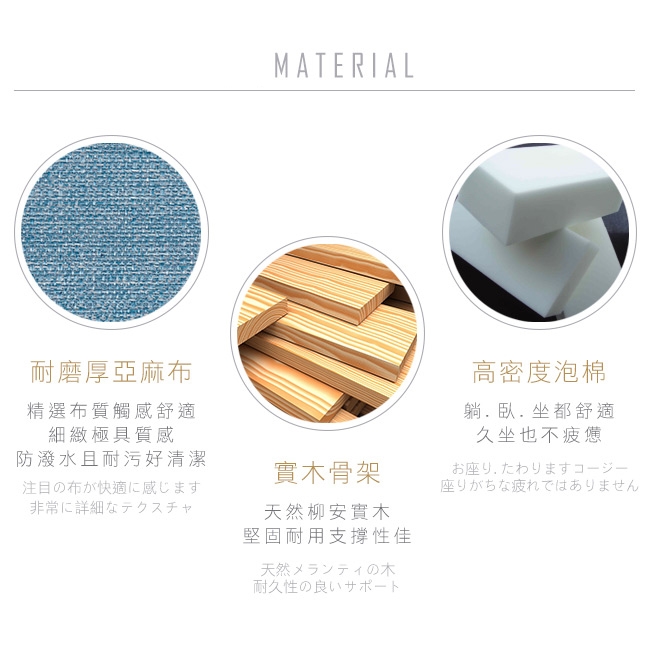 .防潑水厚亞麻布,極具質感,觸感舒適!