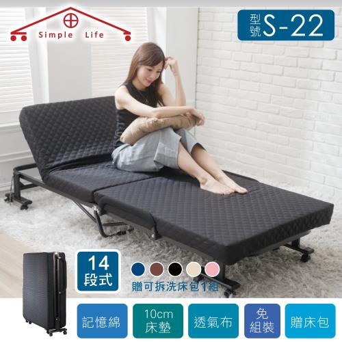 【Simple Life】免組裝14段折疊床(贈床包)-黑S-22