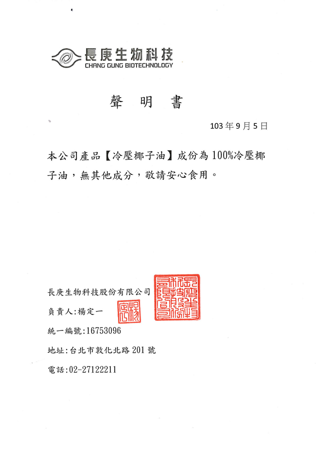 《長庚生技》 頂級冷壓特級椰子油 1瓶(454g/瓶)
