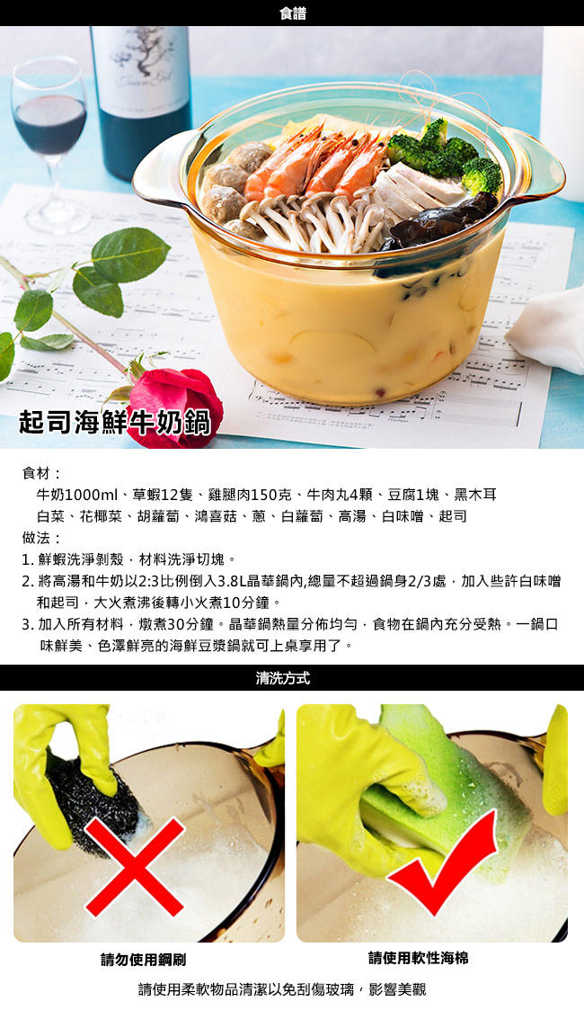 ●透明玻璃鍋蓋請稍待恢復至常溫後再浸入水中清洗。