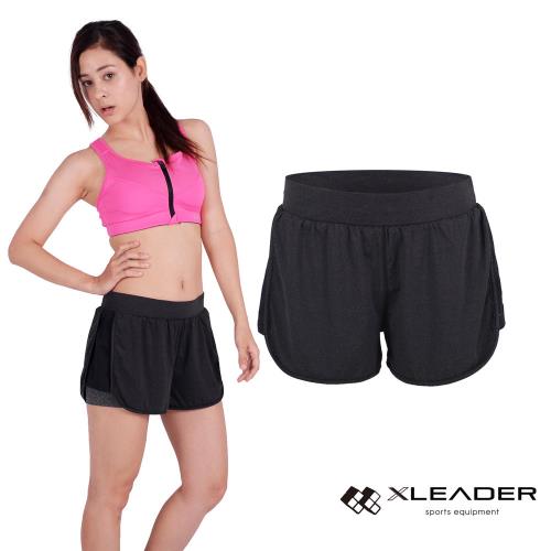 LEADER FTS-104假兩件 彈性吸排運動短褲 女款 黑灰