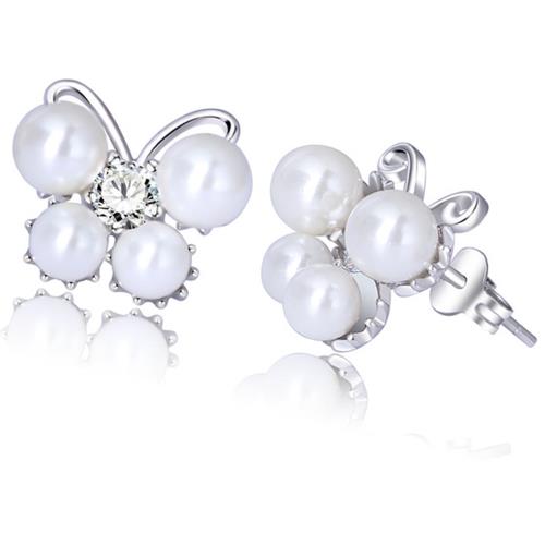 【I.Dear Jewelry】 珍珠蝴蝶-正白K-精緻海洋淡造型珠蝴蝶耳環(現貨)