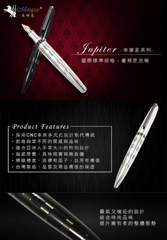 MITIQUE美締克 Jupiter 幸運星系列 亮鉻細圈紋黑夾鋼珠筆