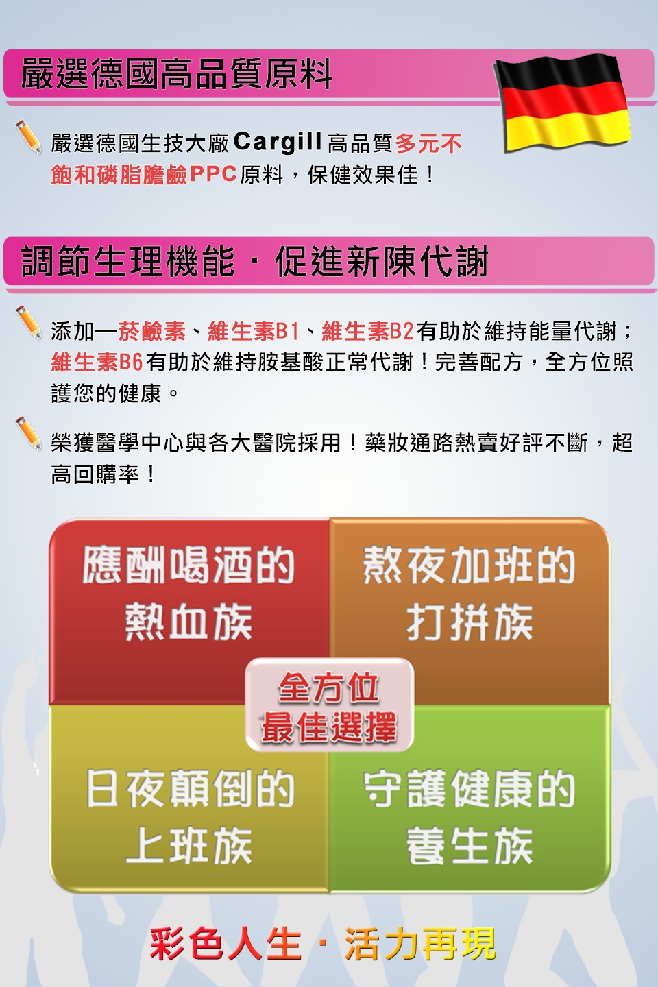 ☆嚴選德國生技大廠Cargill多元不飽和磷脂膽鹼PPC高品質原料,品質來源有保障!