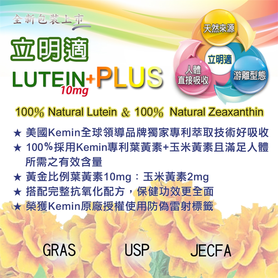 ☆新一代配方大升級☆ 100%採用Kemin游離型專利葉黃素+玉米黃素