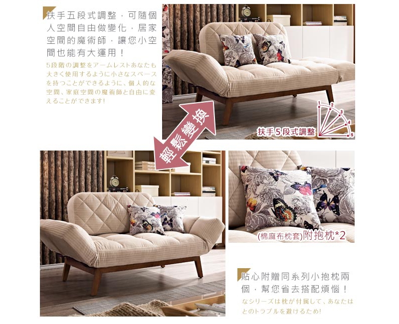 扶手五段式調整,打造魔術大空間,是沙發更是床,舒適有型!