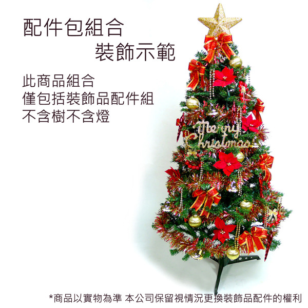 家裡已經有顆聖誕樹但飾品老舊不全了或是想要煥然一新嗎? 我們特別為不同尺寸的聖誕樹推出了已經搭配好的全套飾品組合,讓您不用煩惱一個個飾品挑選只要挑選您喜歡的色系就可以輕鬆訂購然後享受與親友家人一起掛聖誕飾品的溫暖快樂! [產品規格 與 注意事項 ] 本商品為262個配件商品組合 (不含燈)(不含聖誕樹) - 10呎(10尺) 300cm聖誕樹 適用