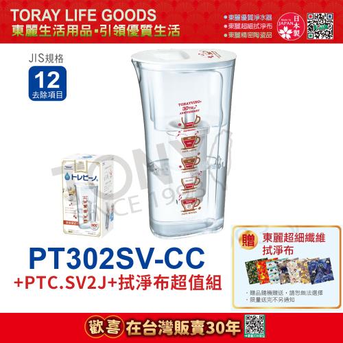 日本東麗 速過濾淨水壺0.4L/分+濾心+拭淨布超值組 PT302SV-CC+PTC.SV2J(總代理貨品質保證)