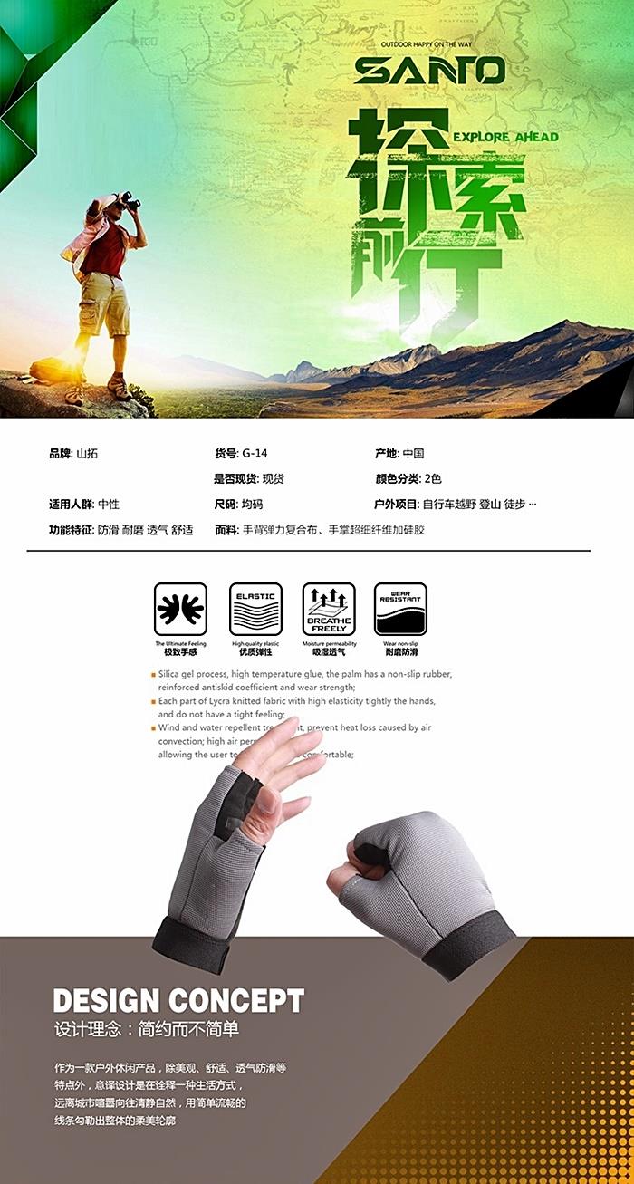 【品名】Santo山拓半指騎行手套/戰術型手套/登山手套男女通用