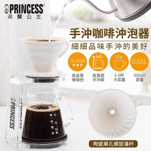 限時下殺【PRINCESS荷蘭公主】手沖陶瓷單孔螺旋濾杯+咖啡壺組/附手沖架 241100S