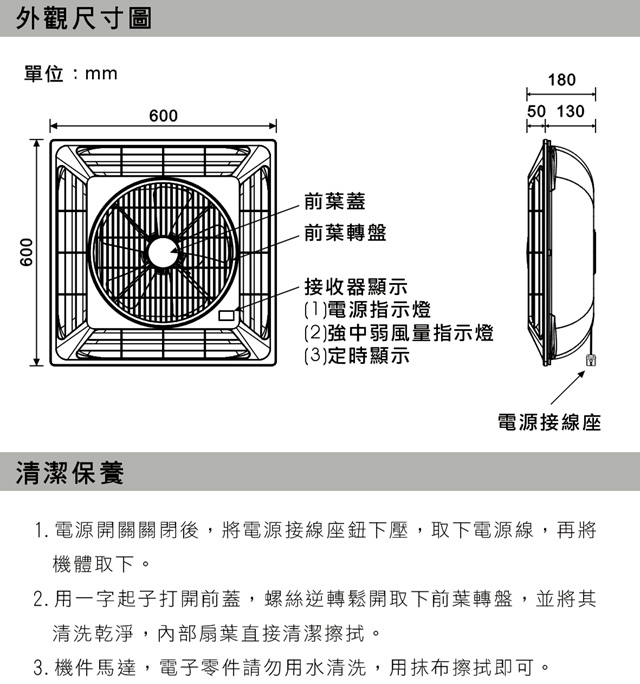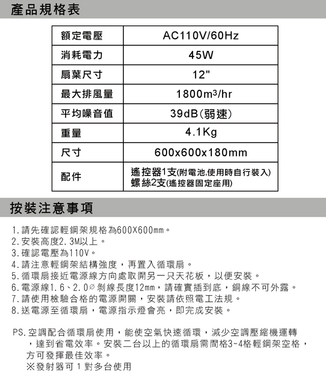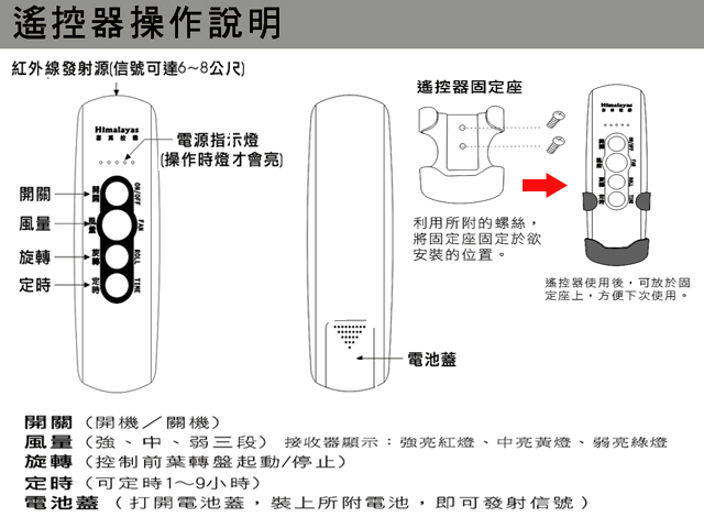 超便利: 紅外線遙控,可一對多台使用、定時 1-9小時、主體面板指示燈功能,能即時知道使用狀況。